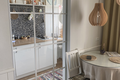 - Кухонная зона оснащена чайником (+заварочный), кофеваркой, тостером, холодильником, столовые приборы, штопор, тарелки, сковорода, кастрюли.