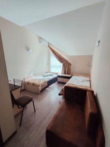 Ужасные матрасы и подушки. На утро болела спина. В номере очень душно. Окна выходили на трассу и поэтому слышно проходящие фуры. Ну и цена за номер и питание в кафе на мой взгляд завышена.