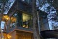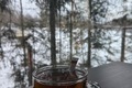 Домик для двоих на дереве с чаном среди многовековых елей.