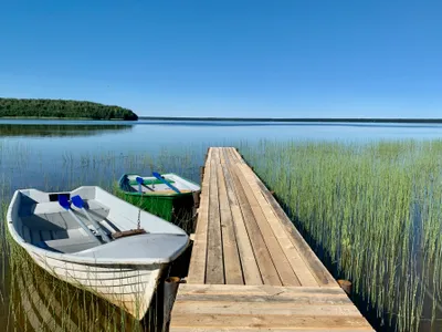Дом очень понравился. Хозяева тоже очень внимательные. В доме чисто, всё работает, всё необходимое есть. Парковка на территории. До озера 2,5 минуты по лесной тропинке. Магазины в отдалении, но для нас это не существенно. Главное — спокойно, тихо, безлюдно. Есть лодка. Вход в озеро с пирса или рядом с ним, несколько метров песочка, дальше ил и... ещё... скрыть