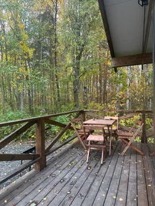 Дом с панорамными окнами с видом на лес