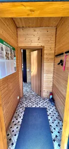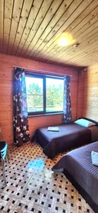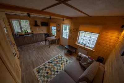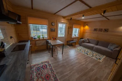 Домик очень понравился, баня супер, печка бани также выполняет роль красивого камина. Панорамные окна в лес, не пересекаются с соседями. Домик просторный. Заселили раньше, а также разрешили выехать позже на следующий день. Хозяйка была всё время на связи. Видно, что хозяева читают отзывы и стараются улучшать условия в домике :) Дорога до домиков супер, проедет любая легковушка без проблем, кусок грунтовки короткий и хороший. Из минусов у нас не работал вайфай, так что закачайте сериалы, карты в навигатор и музыку заранее) Или устройте детокс от интернета)) Спасибо. ещё... скрыть