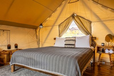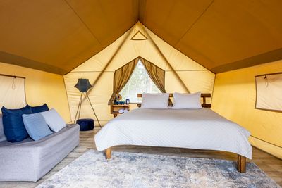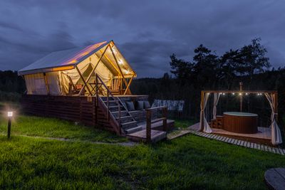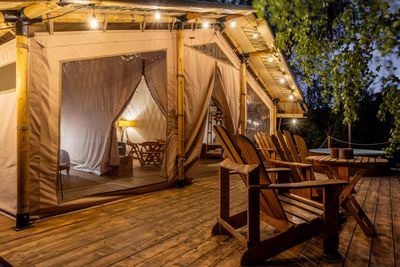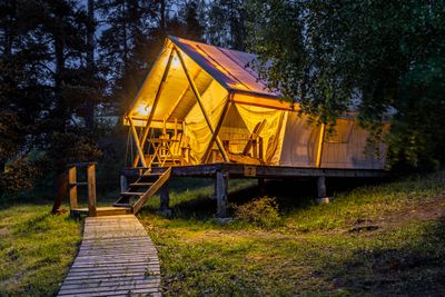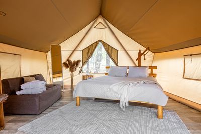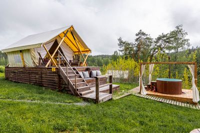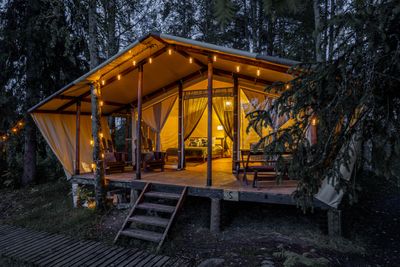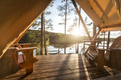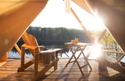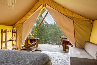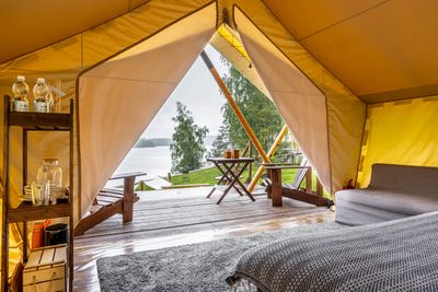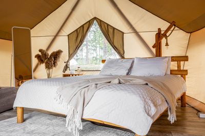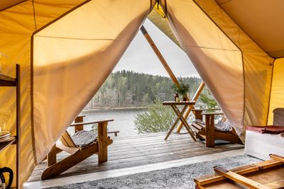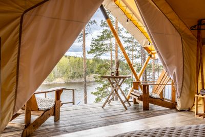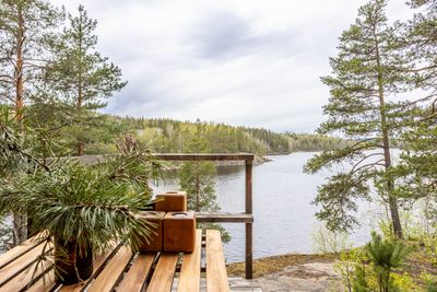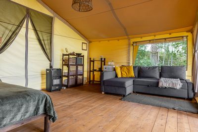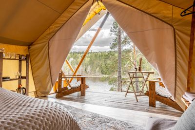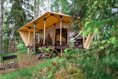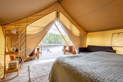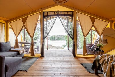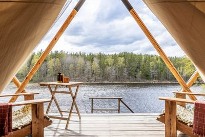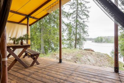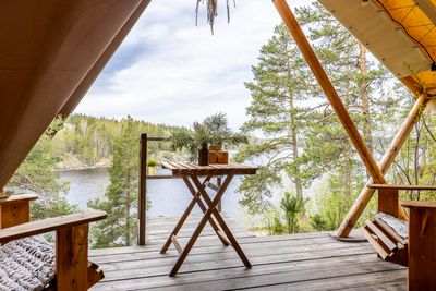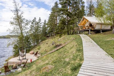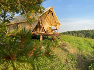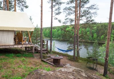 Кемпинг расположен на высоком берегу, из шатра открывается чудесный вид на озеро, ухоженная территория, нетронутая природа - грибы, ягодки, чудесные виды.