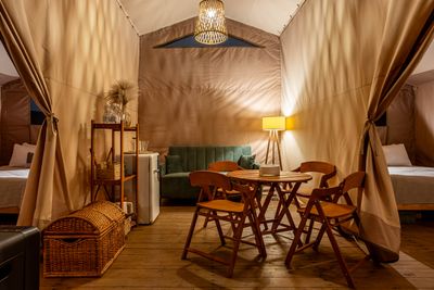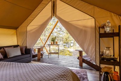 Невероятнейшей красоты место! Красивая, продуманная территория. Есть общая зона, где можно познакомиться с другими гостями кемпинга, погреться вокруг костра, приготовить барбекю и поиграть в настолки. Персонал работает на наивысшем уровне. Такой сервис встречал разве что на Мальдивах в отеле 5*! все продумано до мелочей, а в душевой дорогая краснополянская косметика, которой сами пользуемся дома. В общем, звезды сошлись :) Рядом есть кафе, где можно перекусить и даже выпить при желании.