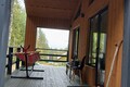 Очень симпатичный домик на краю леса! Гамак на месте, мы проверили))) Вид на лес с террасы живописный. До озера и правда очень близко. Дорога нормальная, на моей Тойоте королле проехали без проблем. По грунтовкам в лесу даже с учётом дождей умудрились покататься на моноколёсах, но это только для фанатов такого досуга)) Ну и доехать на колёсах нормального диаметра до продуктовых магазинов на другом берегу при желании тоже можно. Есть пара стульев и стол складной для пикников, свой мы зря припёрли)) Если в компании больше двух человек, можно захватить ещё пару стульев 👌 Сауна разогревается быстро и жарит будь здоров, отлично попарились. Единственное, если четверо взрослых, нужно следить, чтобы никто слишком долго не плескался в душе, у нас нашлись люди, которые спустили всю воду в нагревателе))))) Ведёрко с бесконтактным датчиком для предметов гигиены в санузле работает исправно и оказалось довольно удобным 😁 А вот туалетной бумаги нам внезапно не хватило, пришлось докупать)) Вай-фай в целом нормально тянет, подвисал только если транслировать с телефона на ТВ. Но смарт тв, опять же, есть, при желании можно любые фильмы-сериалы найти. Если вы лентяи, как и мы, не оставляйте пакеты с мусором на ночь на террасе – кто-то их разворошил. Под подозрением вороны и лиса – мы как-то утром видели, пробегала 🦊